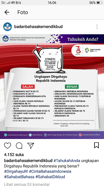 link : Cara Penulisan Ucapan Hari Kemerdekaan 17 Agustus 2018 yang Benar, Bukan Dirgahayu HUT RI ke 73