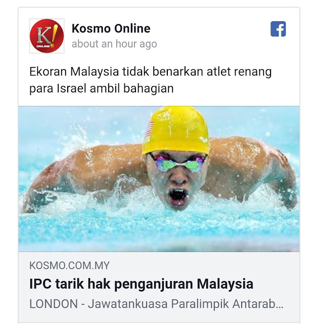 KUALA LUMPUR - Laman sosial Facebook Jawatankuasa Paralimpik Antarabangsa (IPC) diserang ribuan komen dari rakyat Malaysia selepas jawatankuasa induk para dunia tersebut menarik balik hak Malaysia selaku penganjur Kejohanan Renang Para Dunia 2019 di Kuching, Sarawak.